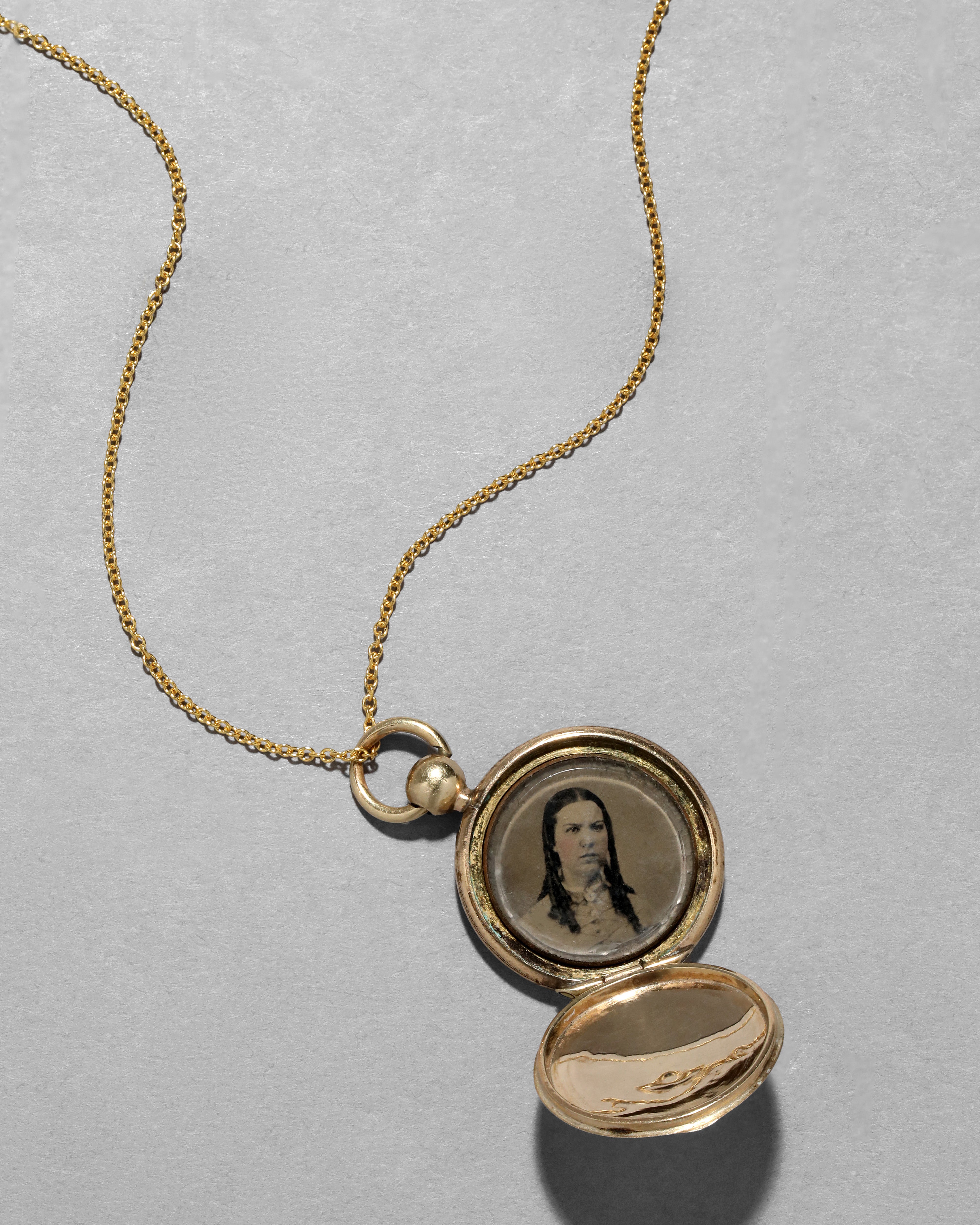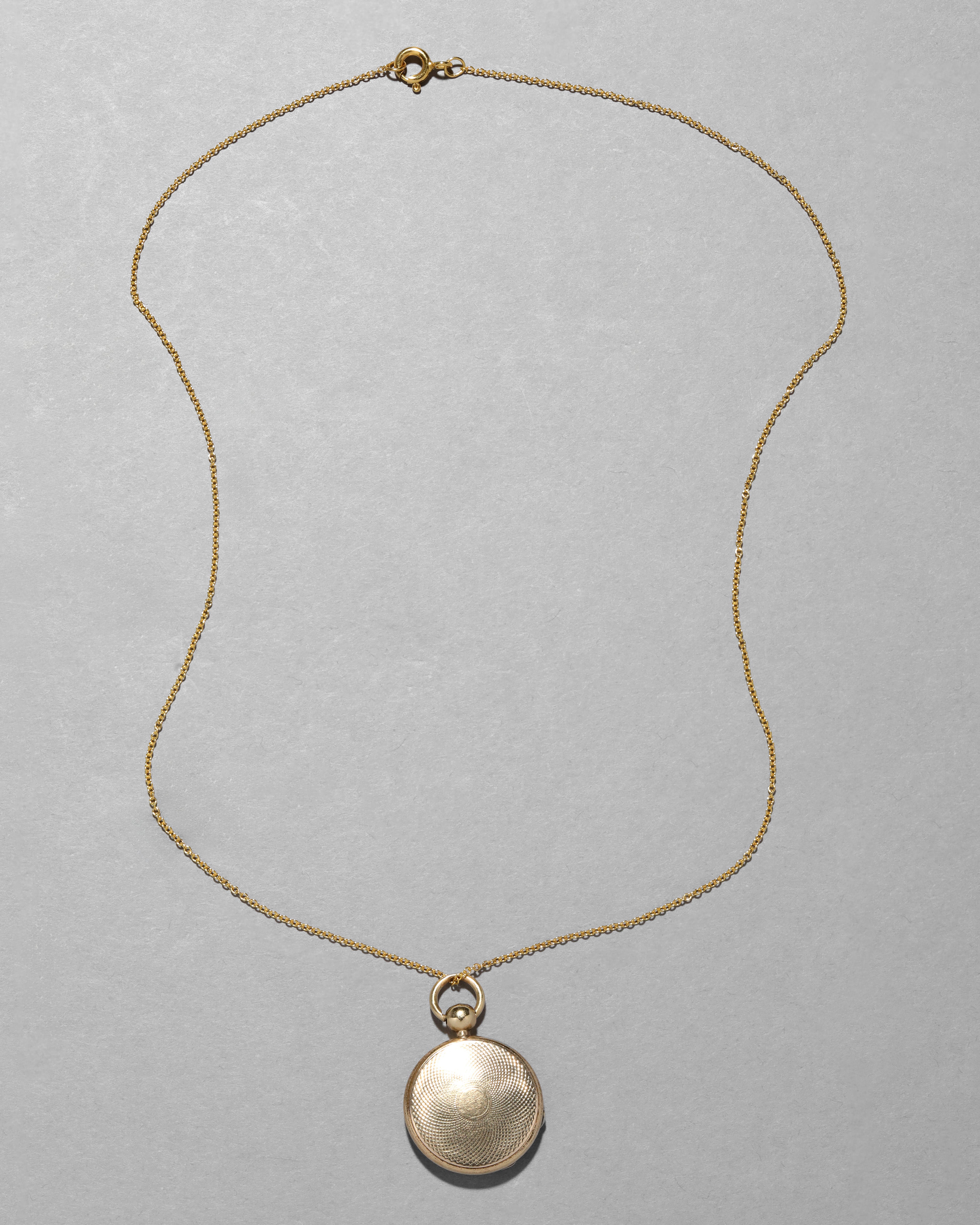 This classic Victorian era 14k gold fill locket has a sleek watch fob style silhouette, with a textured face that glistens as it catches light from every angle.