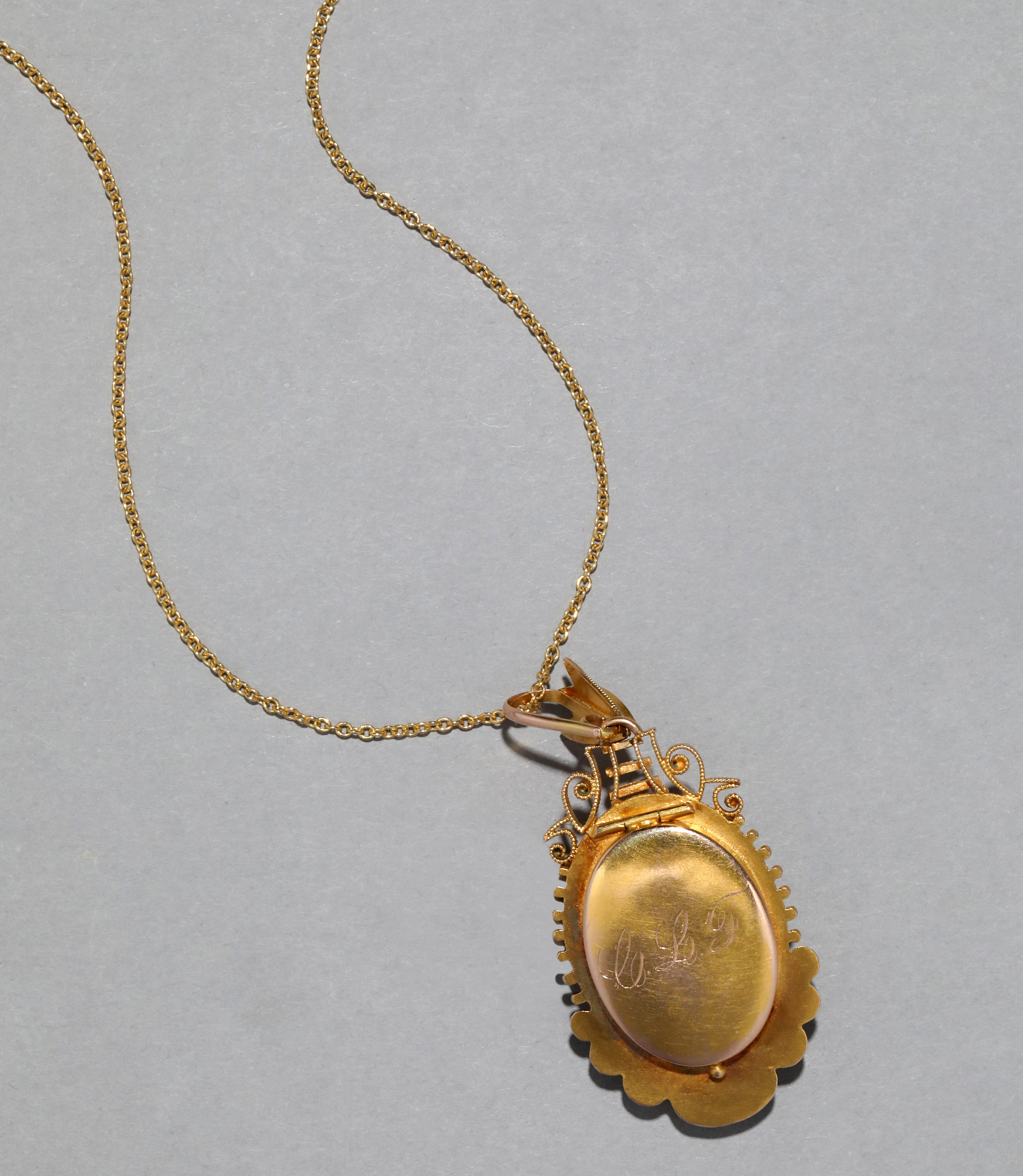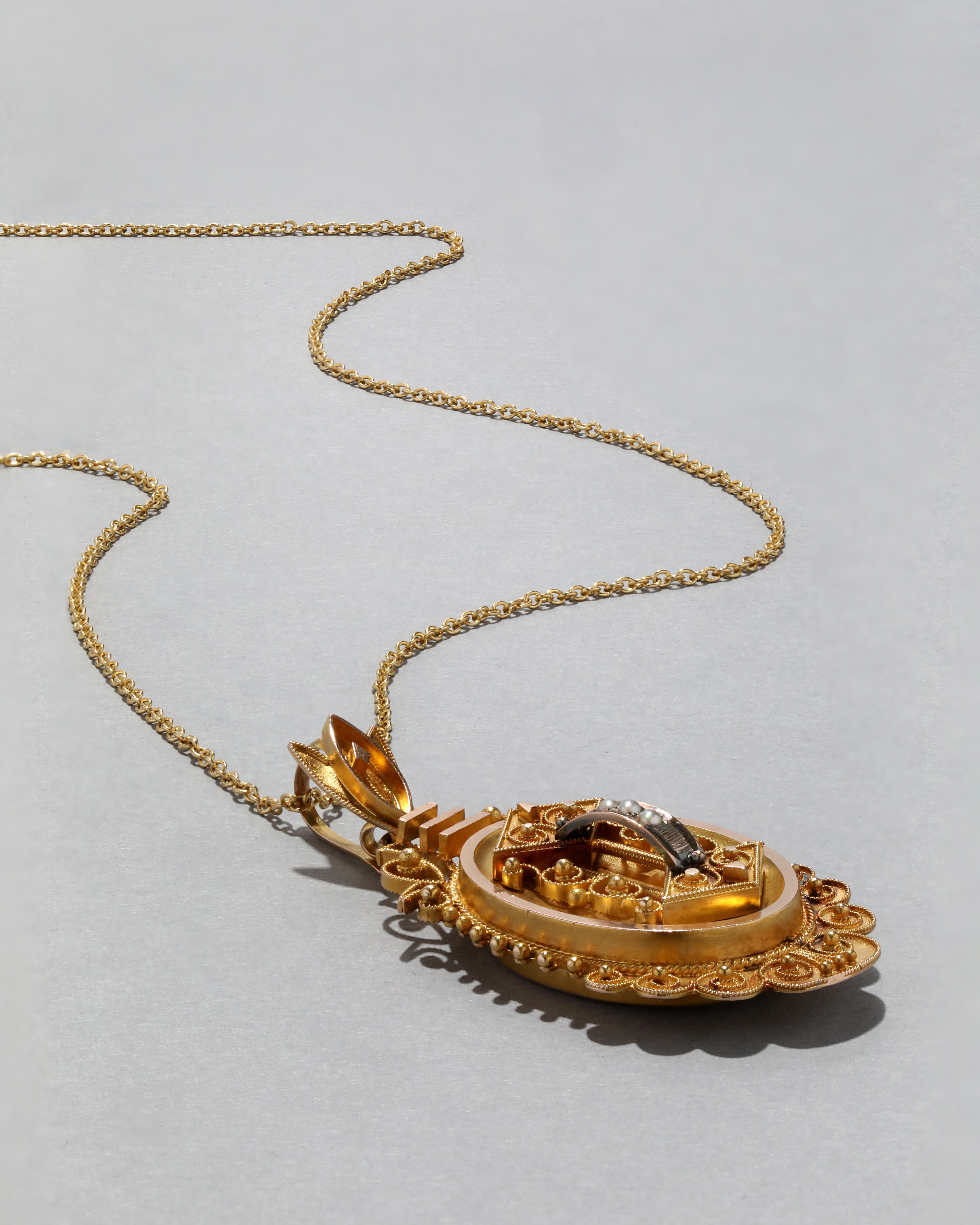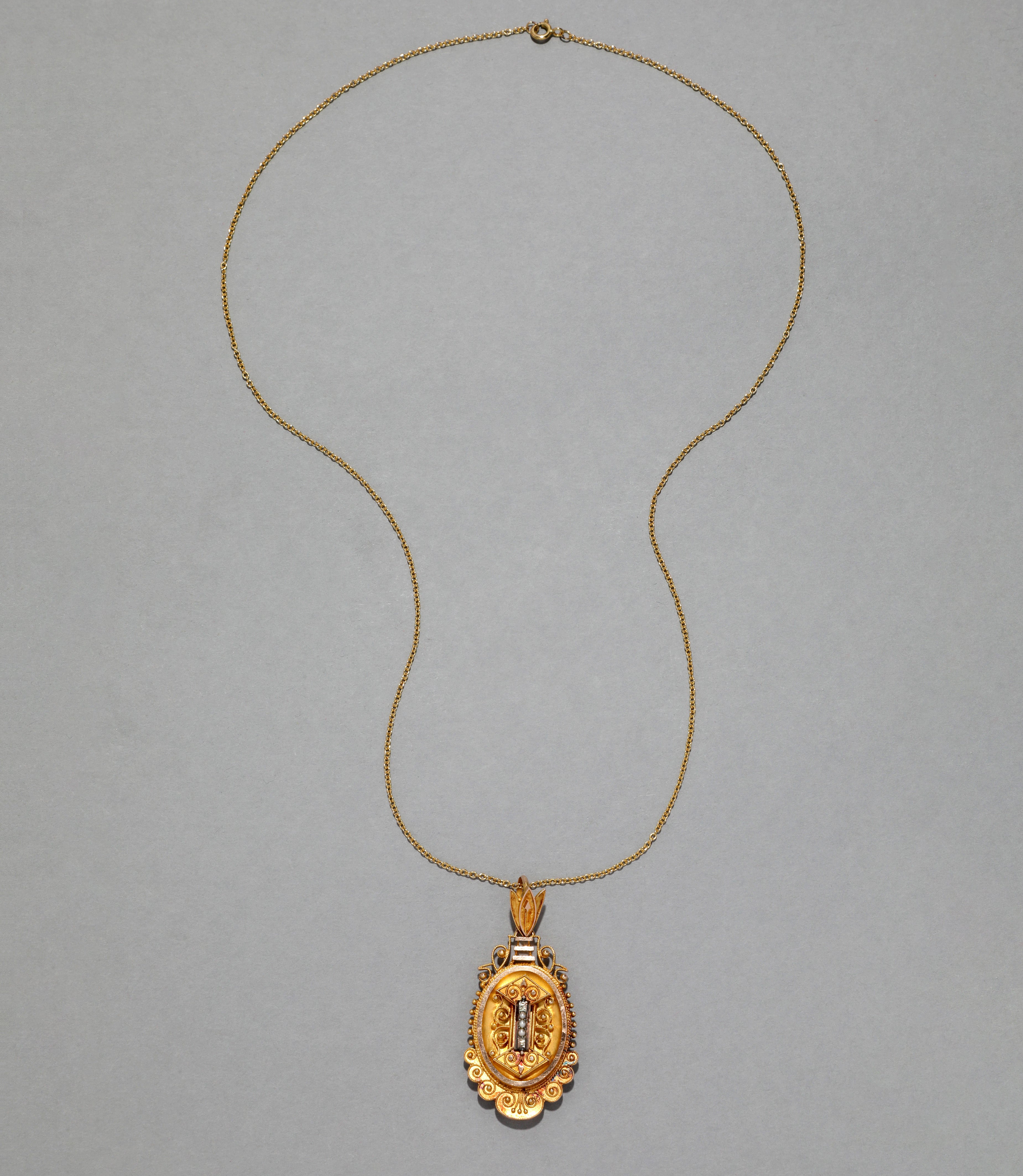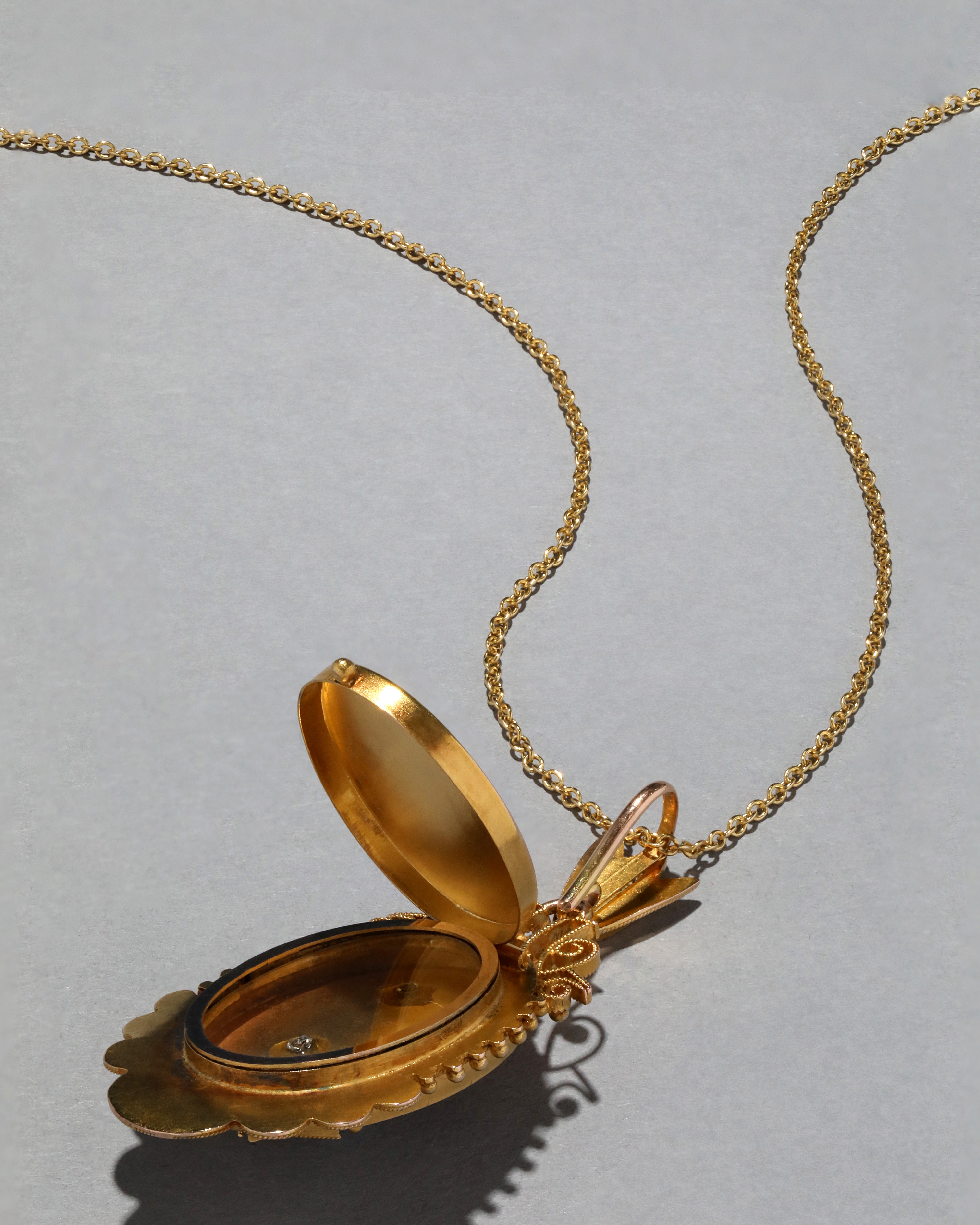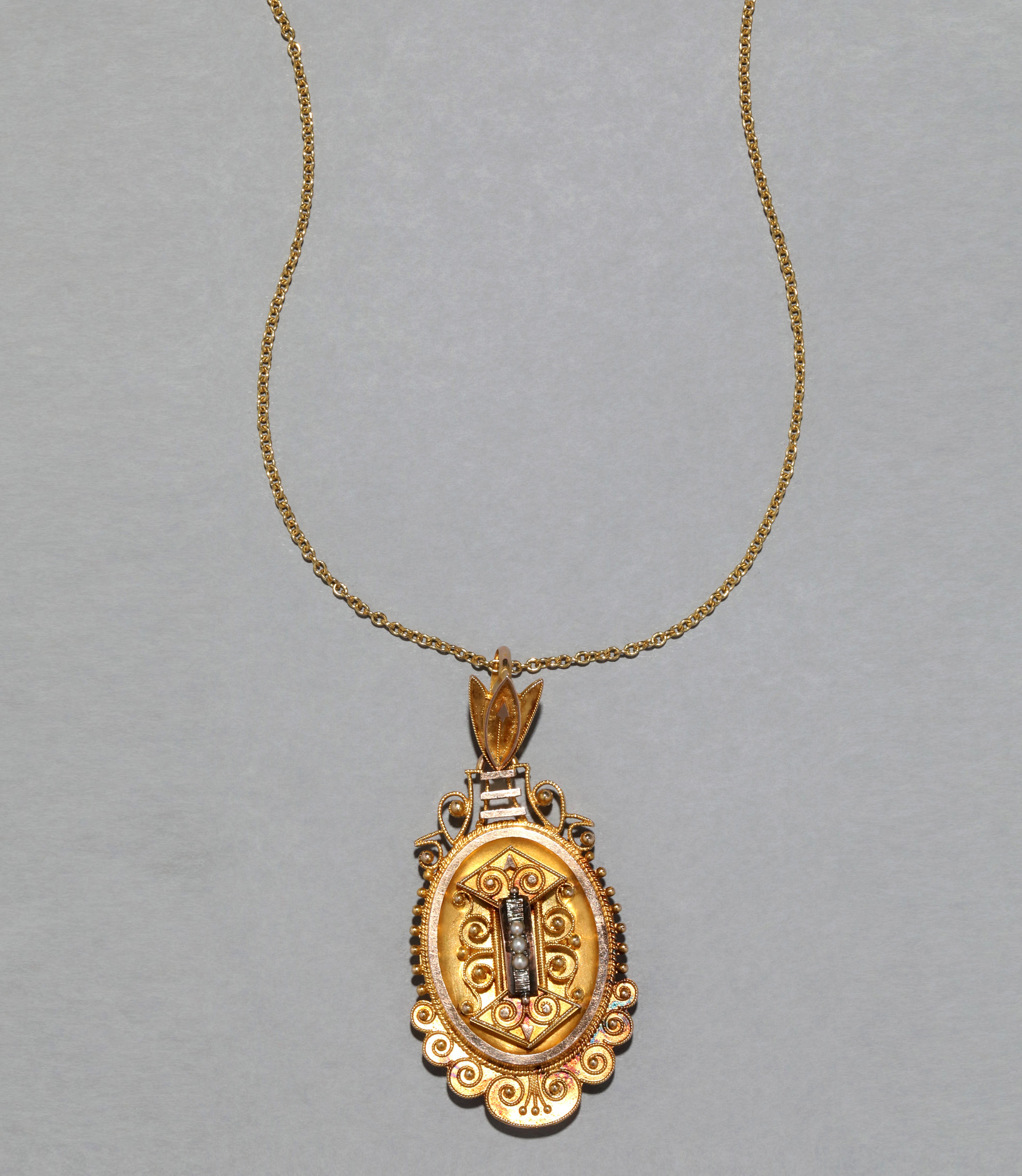 Antique Victorian 1880s 15k Gold Etruscan Locket Necklace with Pearl - Etruscan metalwork specific to the 1880s Victorian era, handmade - unique because of the locket on the back.