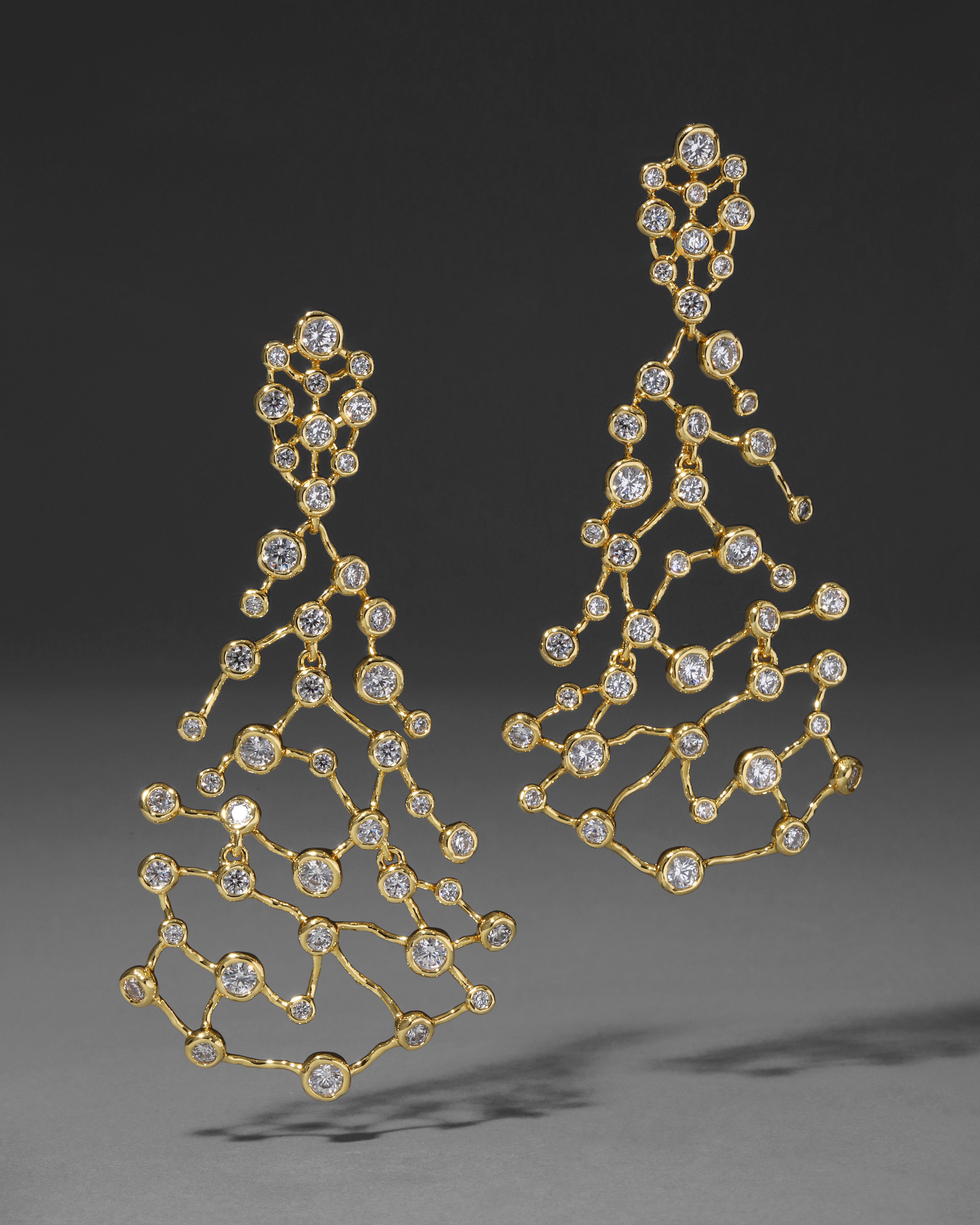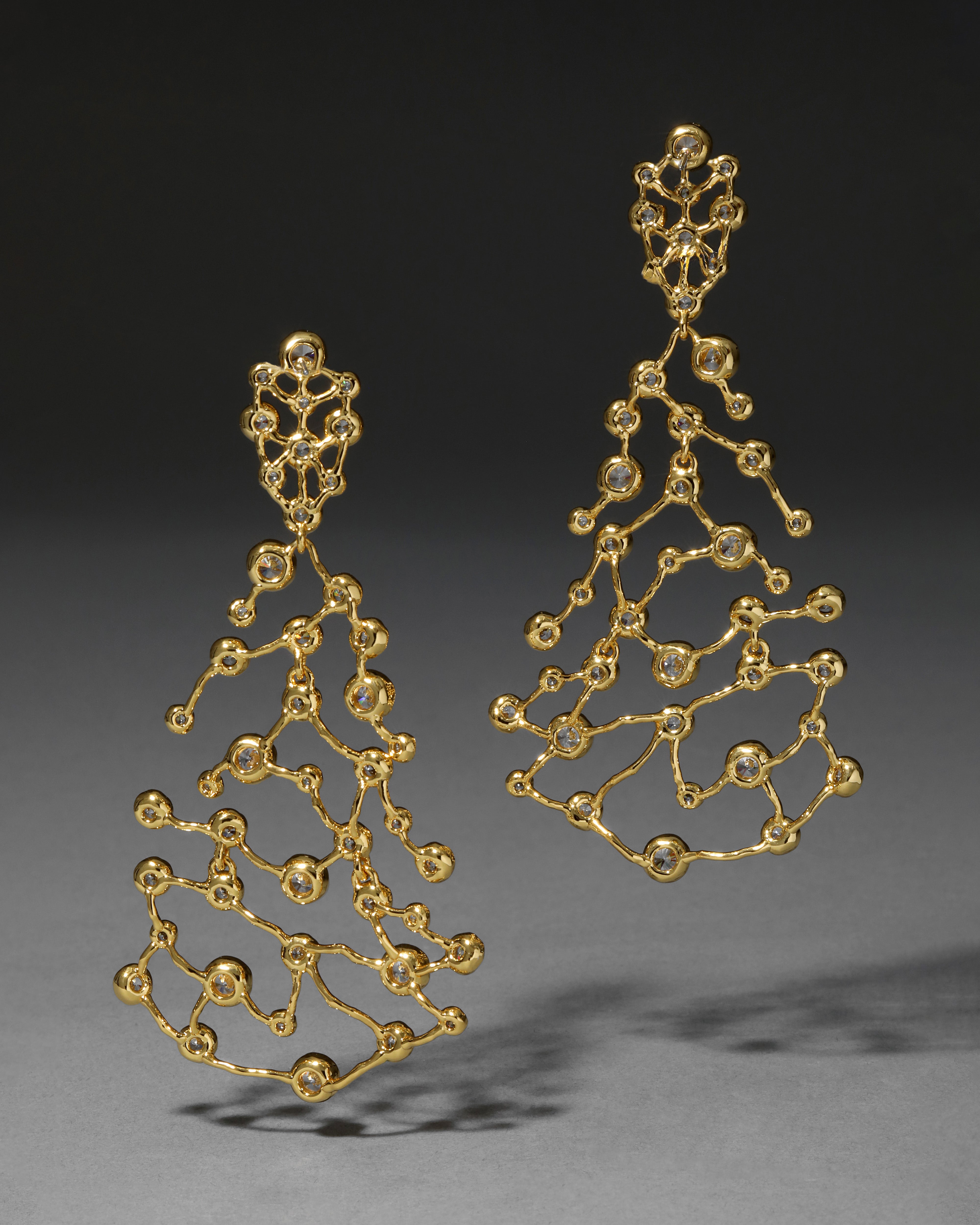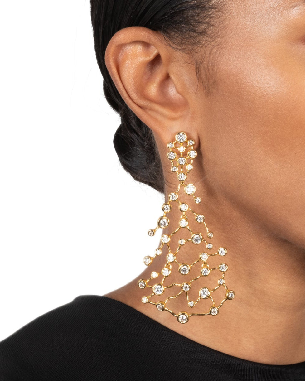 Inspired by celestial formations, these oversized 14k gold plated post earrings feature a constellation of open metalwork connected with brilliant CZ crystals.