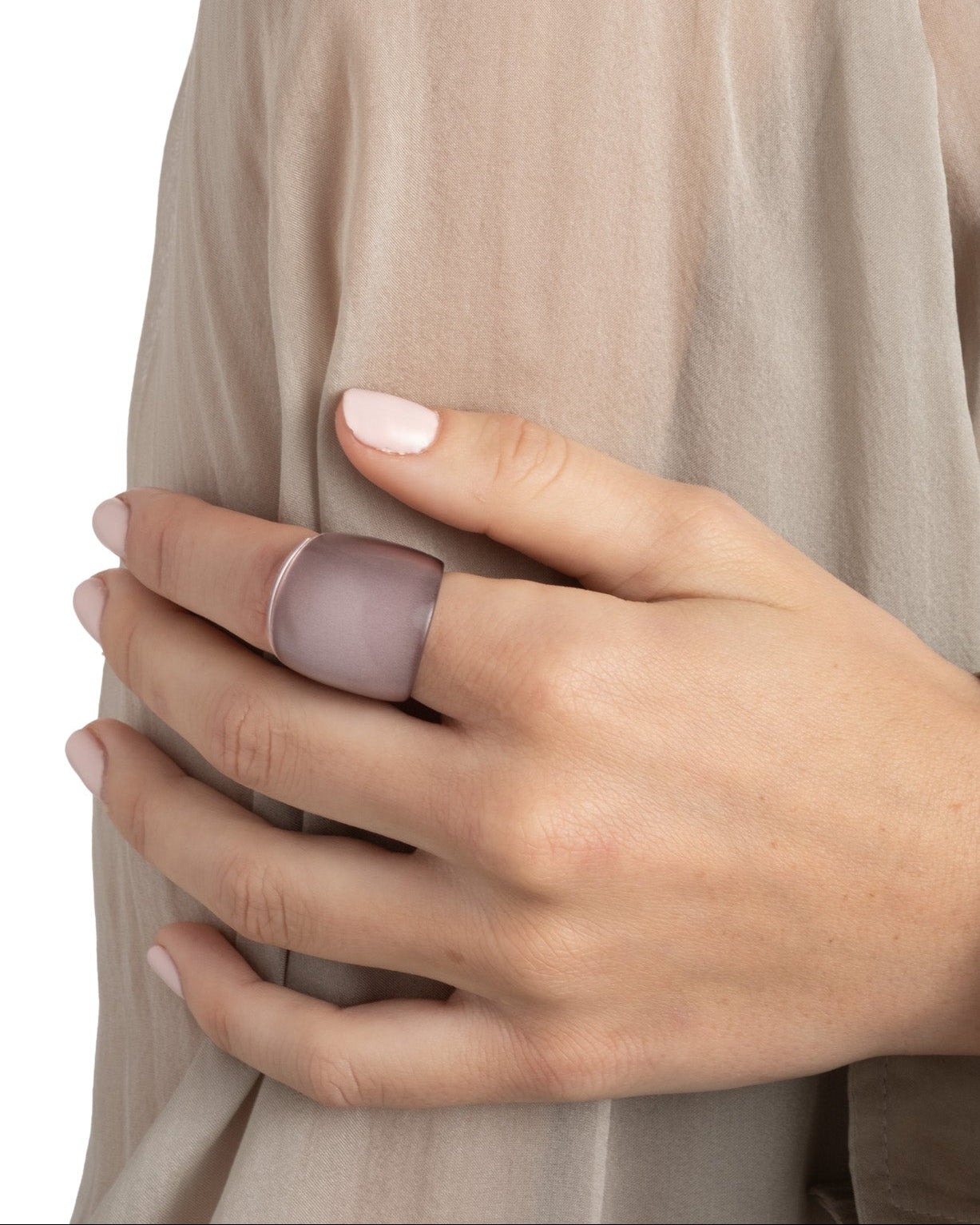 Designed in 1992, the simplicity in form and shape of this ring is one of the best examples of Alexis Bittar's signature Lucite. With a slightly oversized silhouette, the classic Block ring enables the true luminosity of our hand-carved and hand-painted polished Lucite to shine.