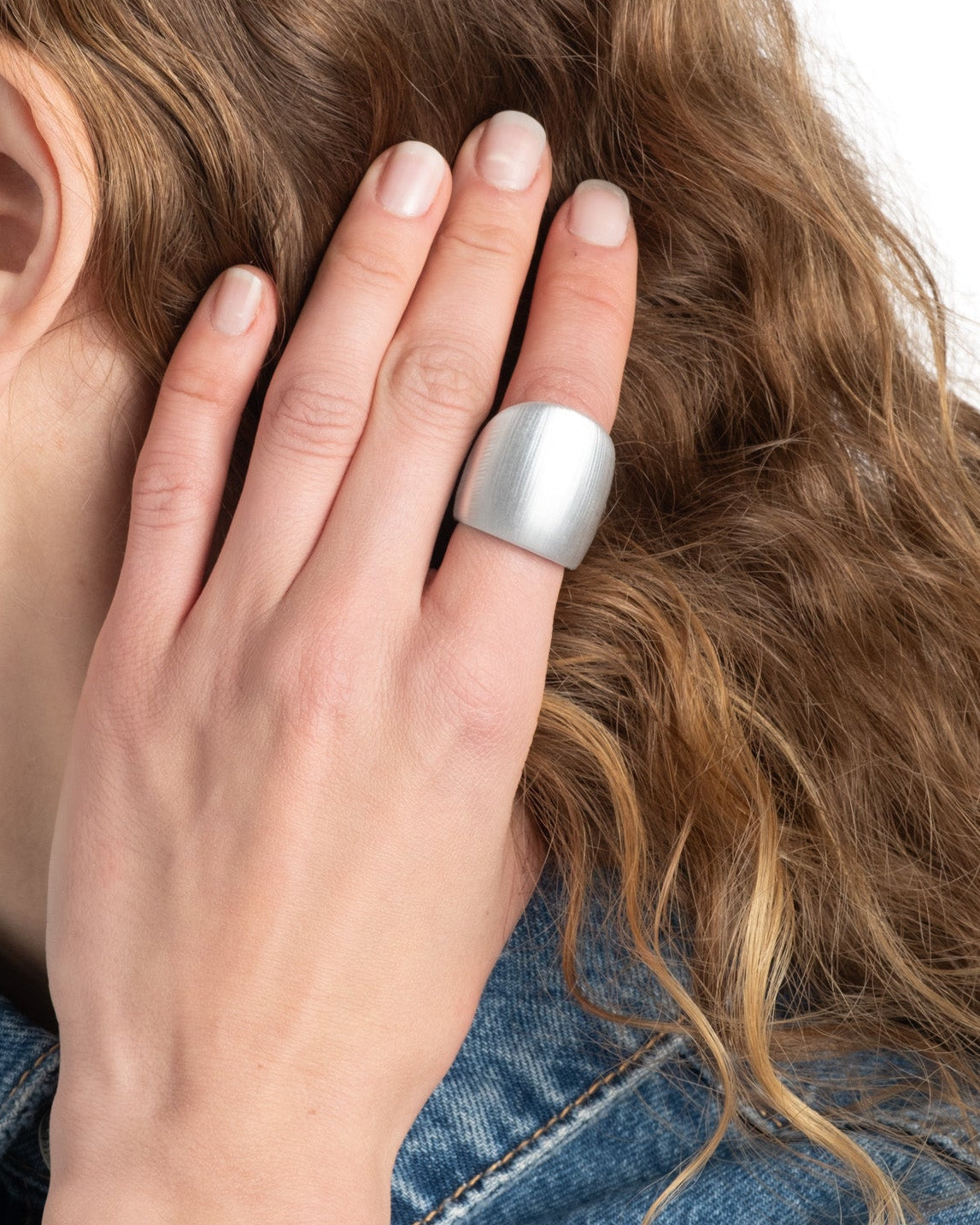 To clean this silver block Lucite ring, gently wipe the surface with a soft cloth. For additional care instructions visit our FAQ page.