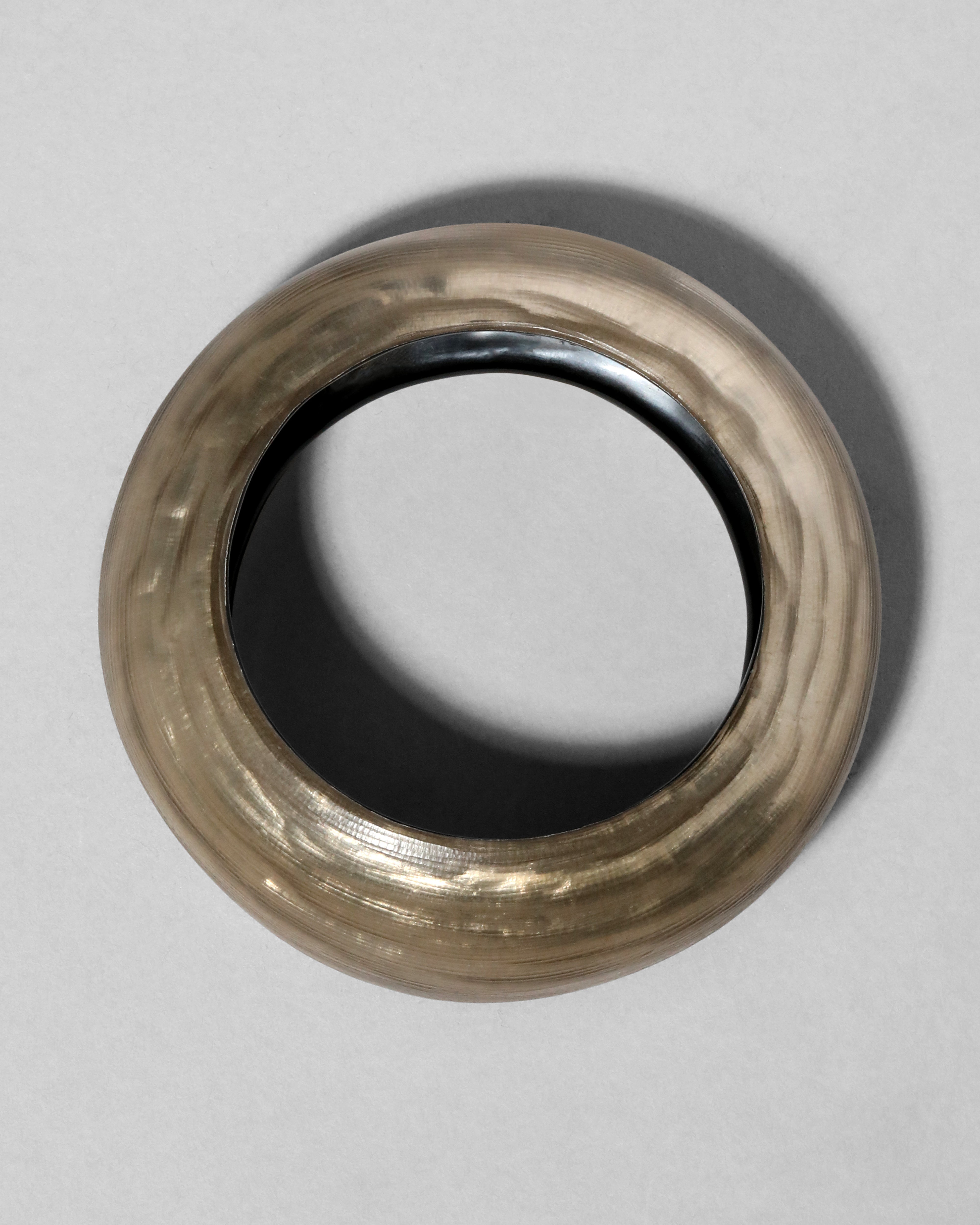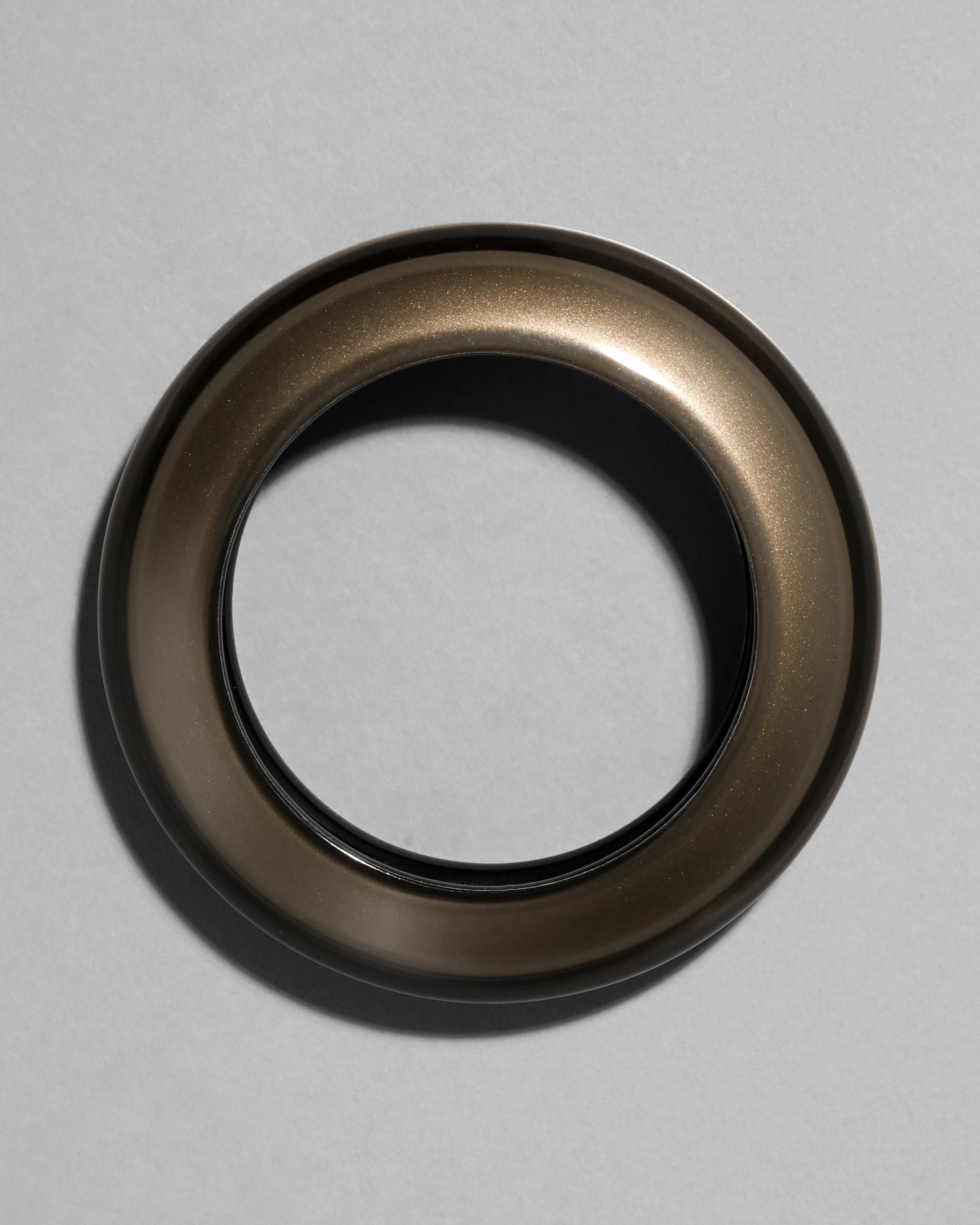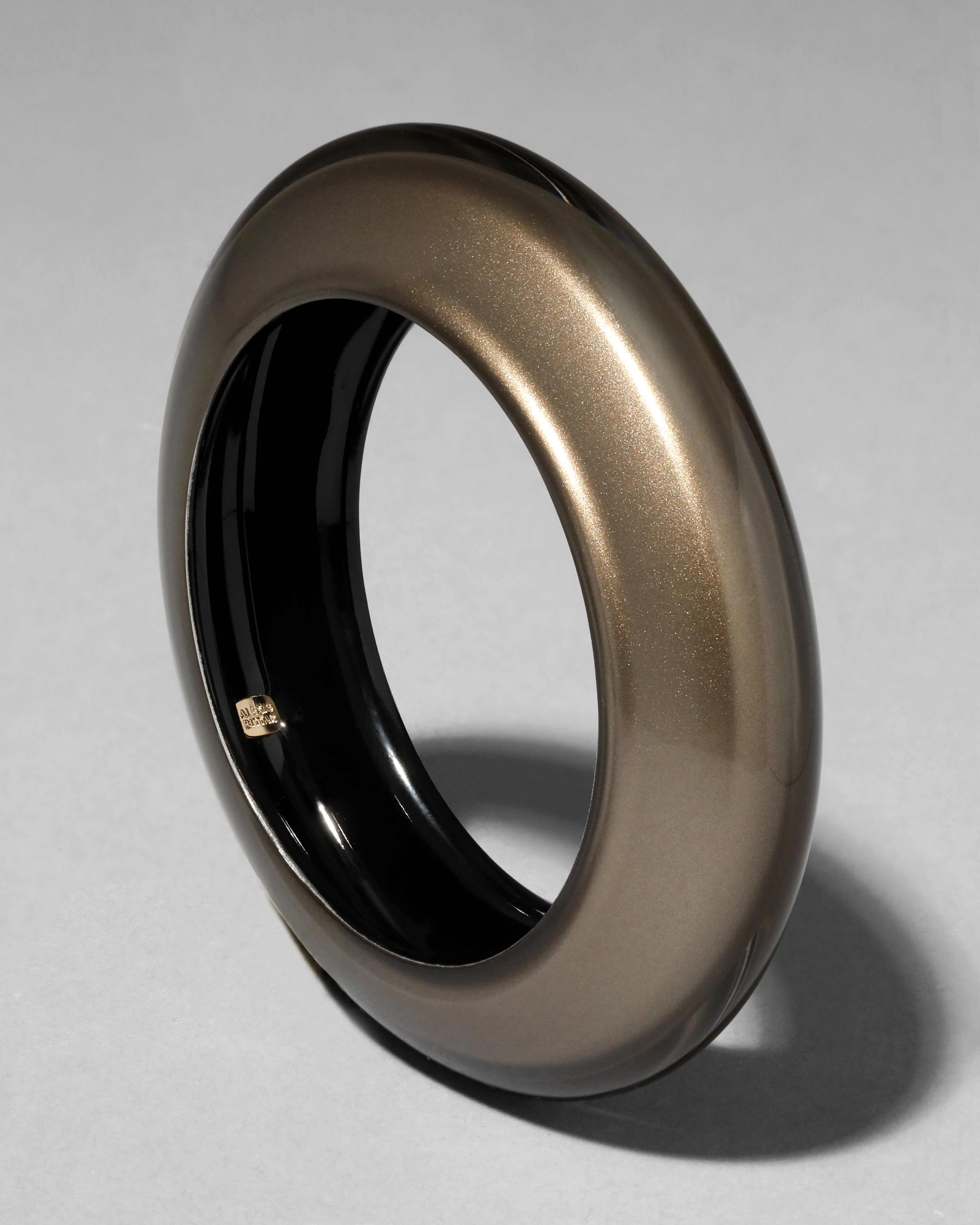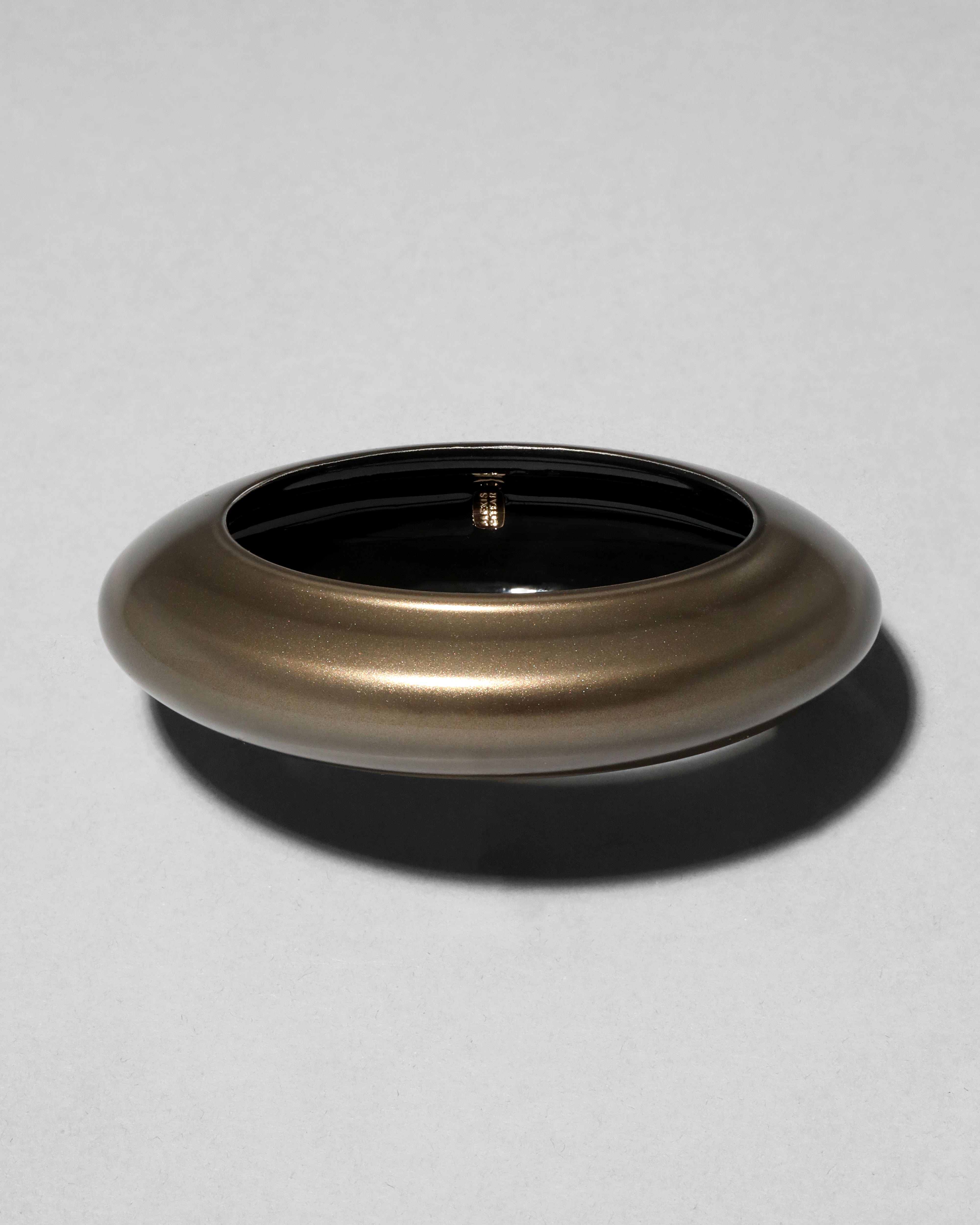 Hand-sculpted from a single block of Lucite, the Saucer bangle has a luminous hand-painted oblong silhouette that is both lightweight and wearable. Add an extraterrestrial glow to any bangle stack or wear alone for a more minimalist look.