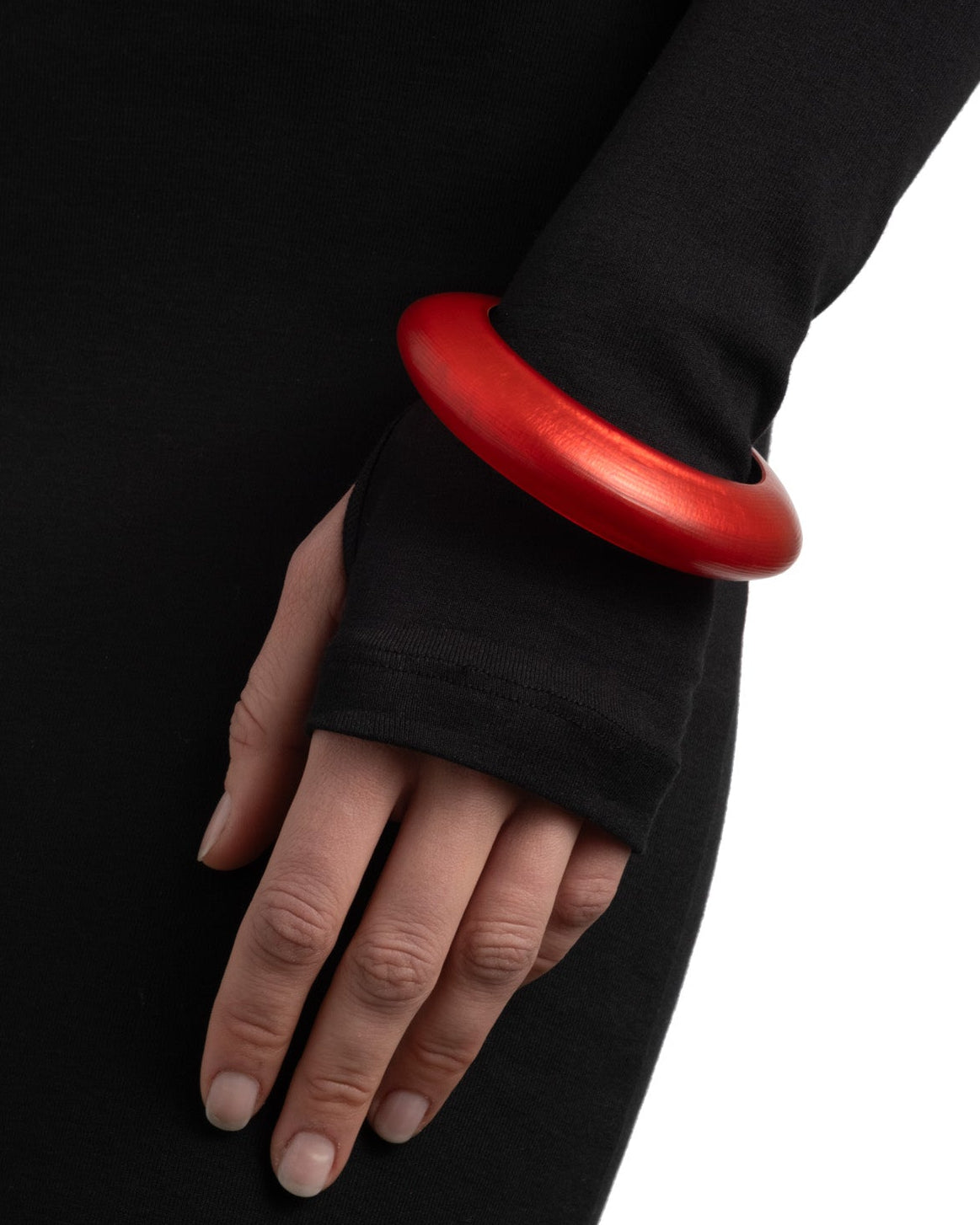Hand-sculpted from a single block of Lucite, the Saucer bangle has a luminous hand-painted oblong silhouette that is both lightweight and wearable. Add an extraterrestrial glow to any bangle stack or wear alone for a more minimalist look. This style is exclusive to Alexisbittar.com.