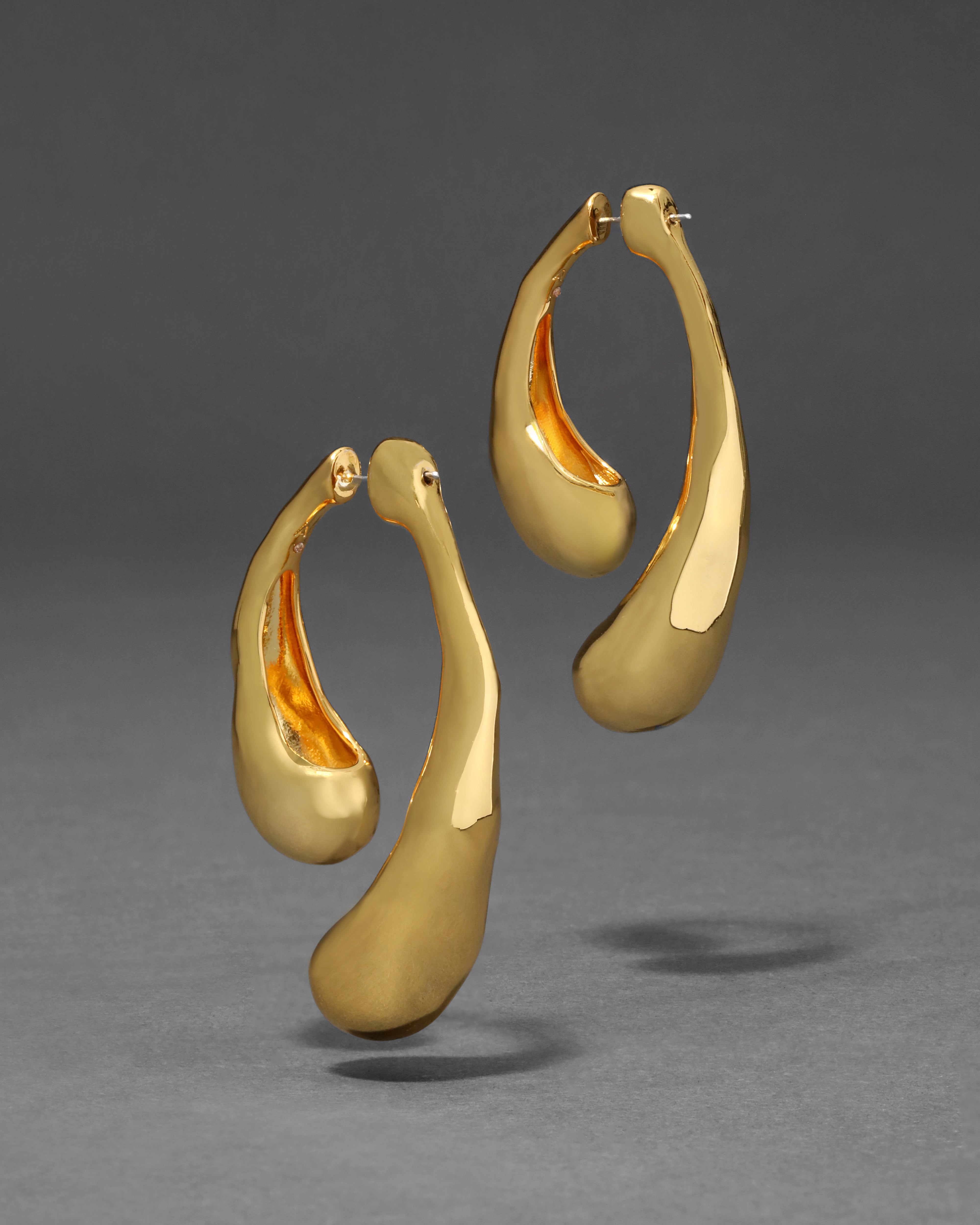These sculptural front back post earrings feature a molten 14k gold plated scoop silhouette on each side, for a strikingly modern silhouette.