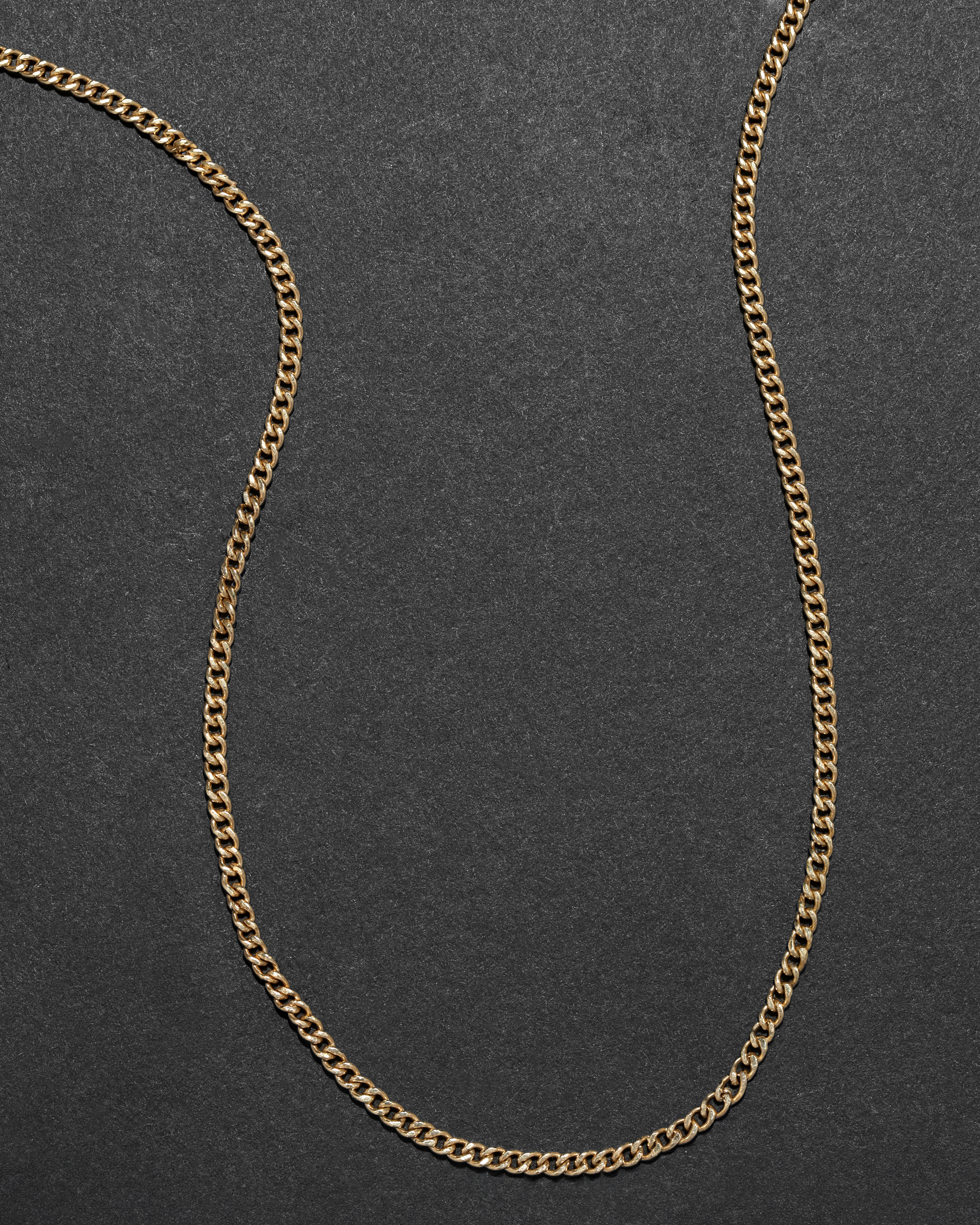 This vintage 14k curb chain features simple links and a secure spring ring clasp.