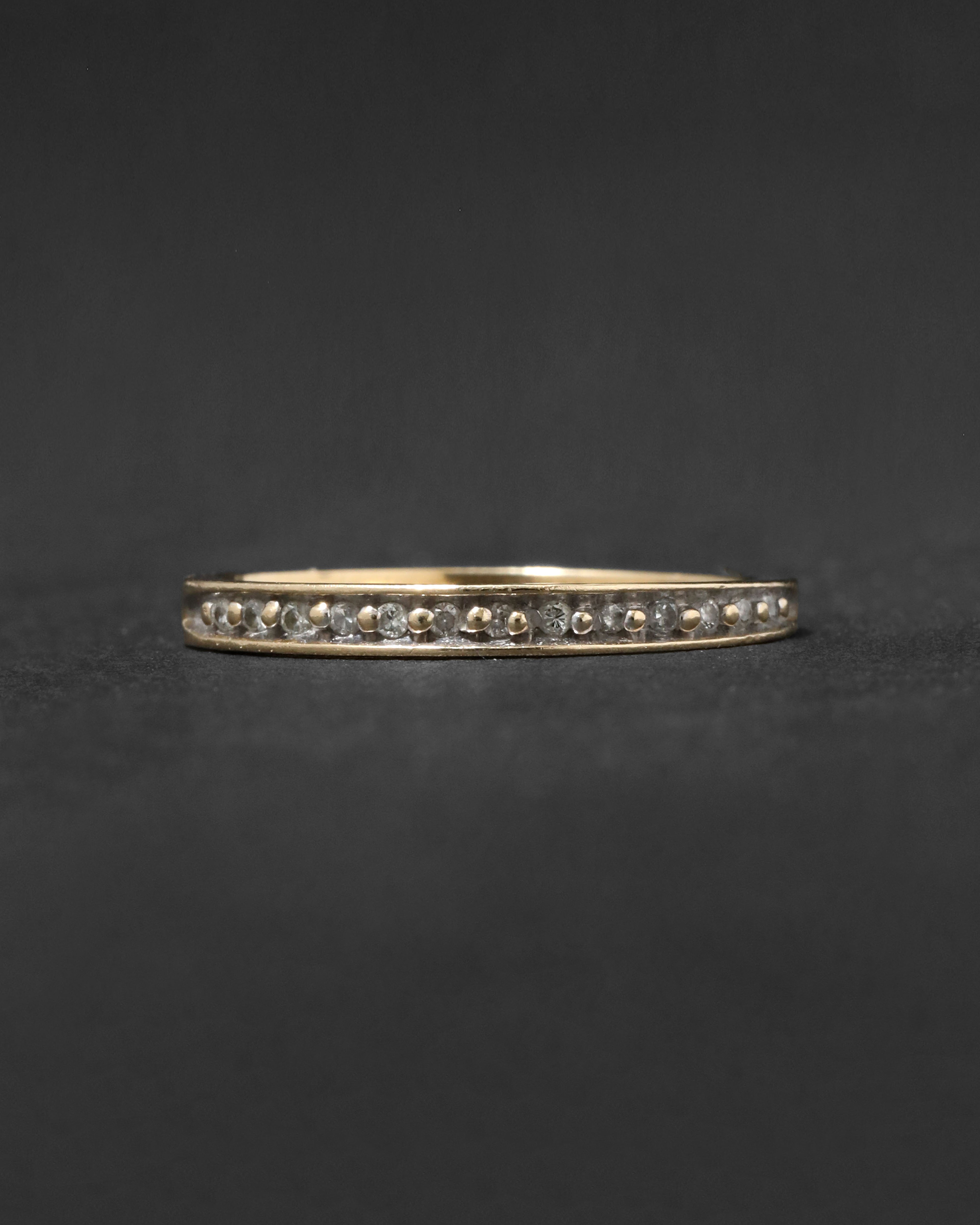 Timeless 14k gold eternity band ring from the 1950s, with glistening diamonds channel-set throughout.