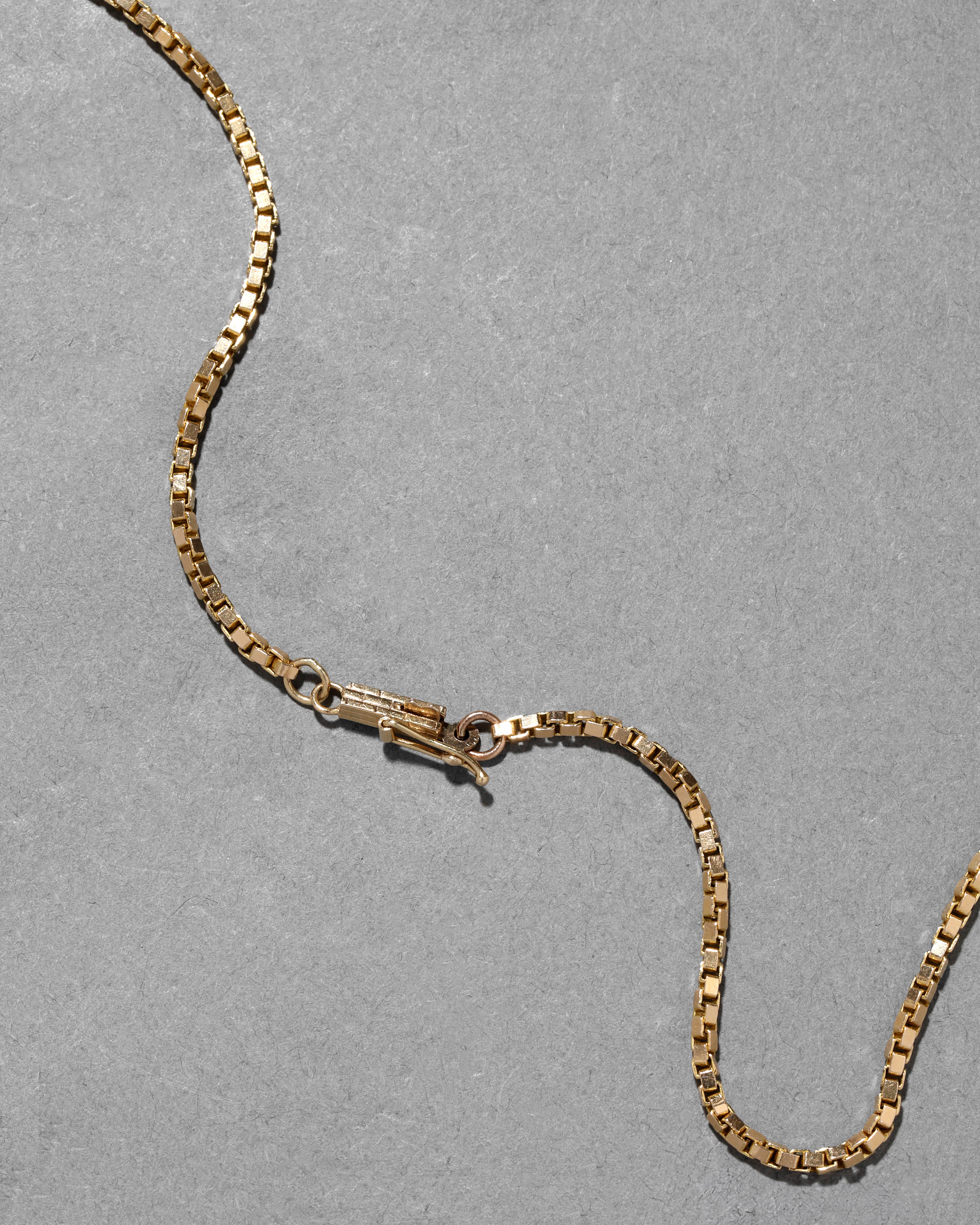 Chic high-shine 14k gold box links form this versatile chain necklace from the 1970s thats perfect for layering or wearing as a single statement.